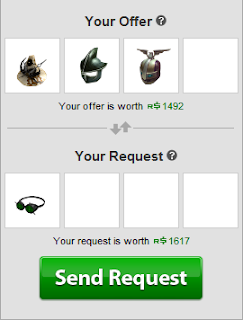I actually spent 194R$ over, but that is besides the point! I then started to trade my way up. I completed quite a few trades and got rid of 2 or 3 hats to get a more valuable one. Sometimes I traded 1 expensive hat for 4 smaller ones, just so I had some extra "change" that I could spend to make the RAPs a bit closer so the other person was more likely to accept.