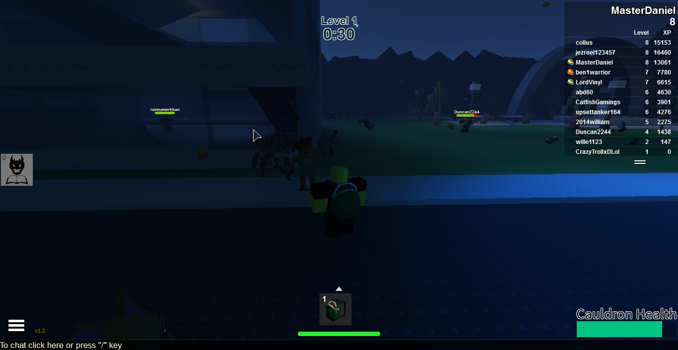 This is a fun, original idea, and although it uses maps from popular roblox places and some people have noticed that the games idea, which is to defend a cauldron, is similar to Guest Defence. The game though is eerie and the idea of playing through the rounds, fighting different foes and collecting badges and hats is both original and very rewarding.