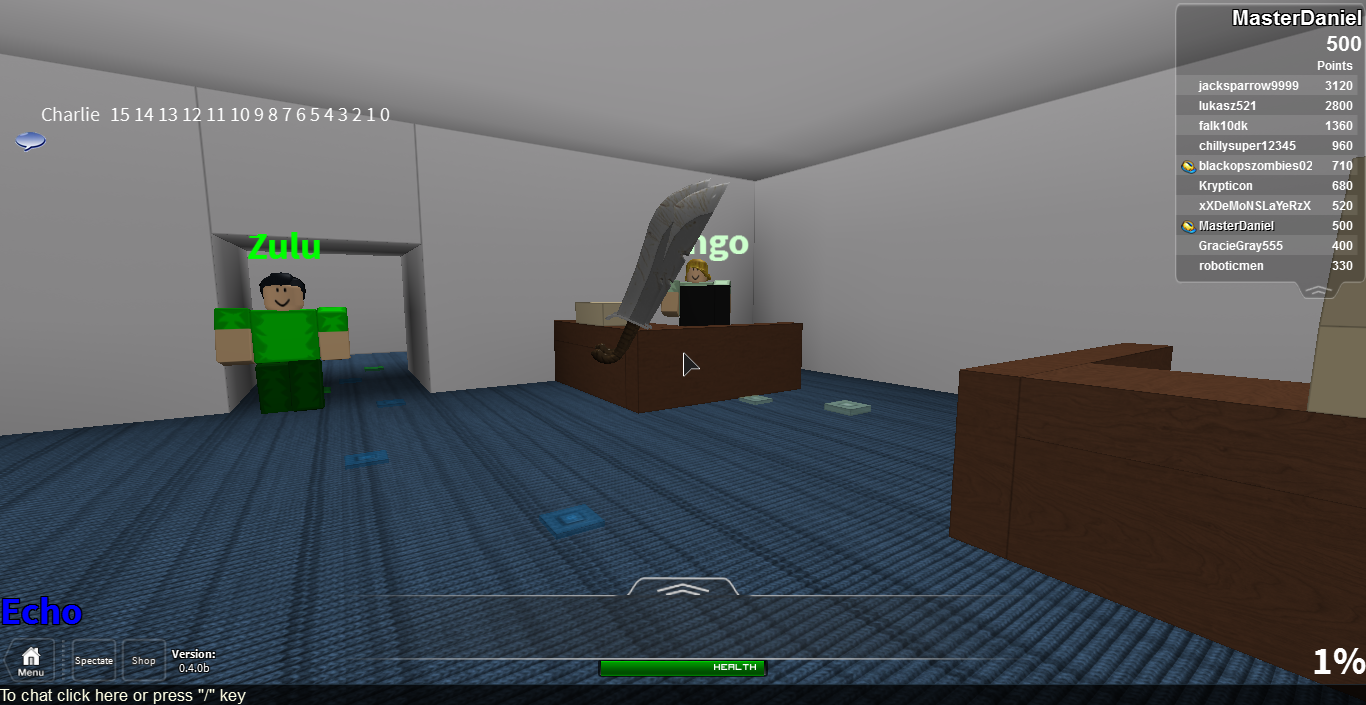 The scripting here is well done but the game doesn't look as polished as Murder. Guis in the lobby are on the wall as SurfaceGuis and this just doesn't look as good as the Guis in Clonetrooper1019's game. However everything works well, including the map rotation which players can vote on.